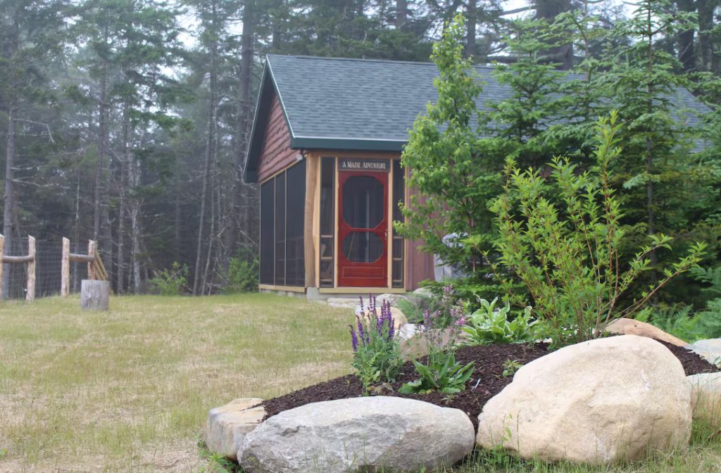 Newly constructed energy efficient cottage tucked in the trees with commanding views to the east and Acadia. With our 3 friendly goats in the foreground you may see a schooner, barge or ferry gliding by as you sip your tea or coffee. Kitchen is equipped with an under cabinet frig, coffee pot, toaster oven, plug in burner, blender and all dishes and utensils needed for basic food prep. Outdoor grill available during warmer months. Spacious bathroom with heated tile floors,and seasonal private outdoor shower. Comfortable king bed with cozy linens and electric fireplace will invite you for a peaceful slumber. Wifi and T.V included.